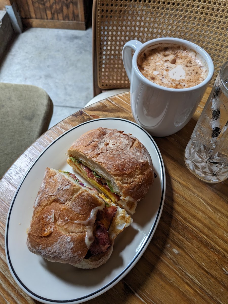 Start your day with one of their signature breakfast dishes, like the Breakfast Sandwich, packed with fresh ingredients and served on a perfectly toasted bun. For those craving something sweet, the Waffle is a must-try, light and fluffy with just the right amount of crisp. Pair either with a rich and creamy Cappuccino for the ultimate breakfast combination. If you're looking for something a little more filling, the Shrimp and Grits will not disappoint. It's a Southern-inspired dish with perfectly cooked shrimp atop creamy, buttery grits, creating a delightful balance of flavors.