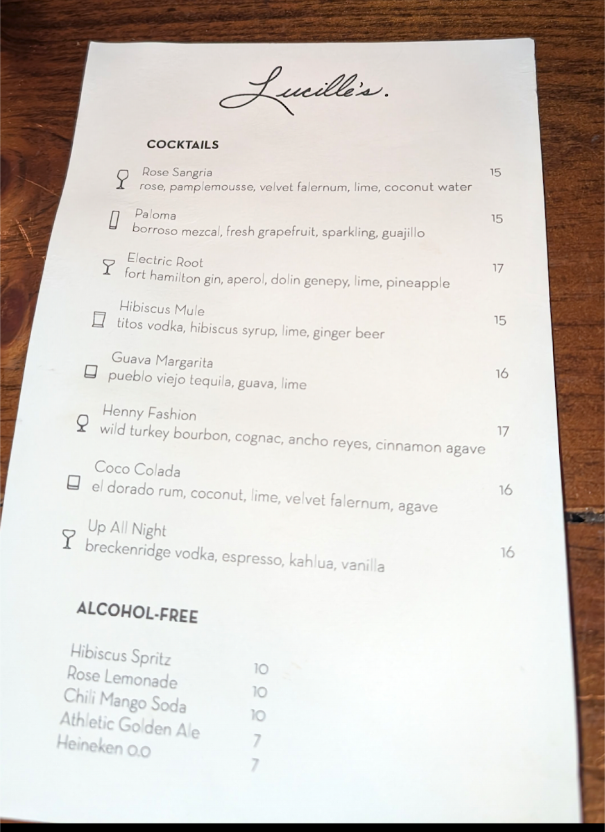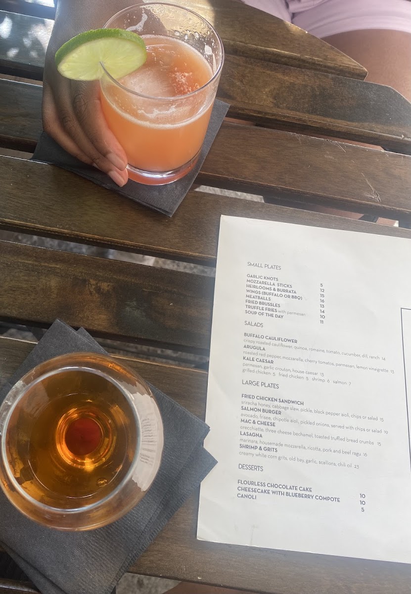 As a final takeaway on the menu at Lucille's Coffee And Cocktails, the offering feels thoughtfully curated, balancing comfort, creativity, and approachability across every section. Breakfast sets a welcoming tone with options like the LOADED BAGEL, BACON EGG + CHEESE, ACAI BOWL, BREAKFAST SANDWICH, and SMASHED AVOCADO, making it easy to ease into the day whether you want something hearty or light. Moving into soups and salads, the SOUP OF THE DAY and CURRY SALAD provide simple yet satisfying choices that work well as starters or lighter meals. The sandwich lineup is varied and indulgent, featuring crowd-pleasers such as TRUFFLE FRIES alongside classics like TURKEY, PROSCIUTTO, ROAST BEEF, and GRILLED ZUCCHINI, appealing to both meat lovers and vegetarians. For sharing or snacking, the small plates shine with familiar favorites like GARLIC KNOTS and MOZZARELLA STICKS, as well as more refined bites such as HEIRLOOMS & BURRATA, MEATBALLS, and FRIED BRUSSLES, which add depth to the menu. Salad lovers can enjoy bold, fresh flavors from the BUFFALO CAULIFLOWER and ARUGULA salads, while those looking for something more substantial will appreciate the large plates, including the FRIED CHICKEN SANDWICH, MAC & CHEESE, LASAGNA, and SHRIMP & GRITS, all of which feel comforting and filling. Pizza is another highlight, with well-rounded options like GRANDMA, VODKA, SUPREME, BUFFALO, and MVP, making it ideal for groups or casual dining. Finally, dessert brings the meal to a satisfying close with the FLOURLESS CHOCOLATE CAKE, CHEESECAKE WITH BLUEBERRY COMPOTE, and CANOLI, leaving a lasting impression. Overall, the menu at Lucille’s Coffee And Cocktails feels cohesive and versatile, offering something for every mood and making it a reliable spot for everything from breakfast to dessert.